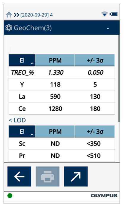 使用奧林巴斯Vanta手持式XRF光譜儀上的偽元素功能,可以在現場實時計算TREO的含量。在檢測過程中,儀器可以完成所有計算,如圖4所示。
