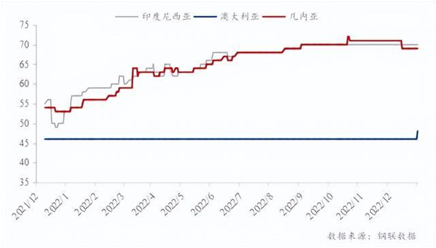 進(jìn)口礦價(jià)格走勢(shì)圖(單位:美元/干噸)