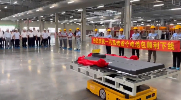 7月21日,一汽弗迪首臺(tái)電池包下線儀式在PACK生產(chǎn)車間舉行,標(biāo)志著一汽弗迪電池包產(chǎn)線調(diào)試取得階段性成果。