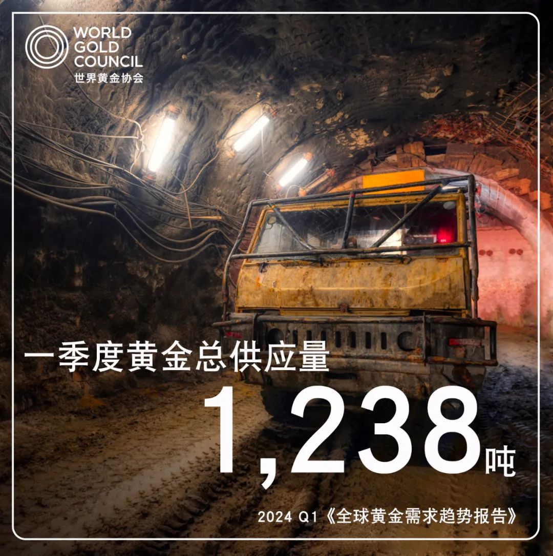 黃金供應方面,一季度,全球黃金總供應量達1238噸,同比增長3%。其中,金礦產量同比增長4%至893噸,創一季度新高。另外,一些投資者趁金價走高進行獲利了結,一季度回收金總量也創下自2020年三季度以來的季度新高,同比增長12%至351噸。