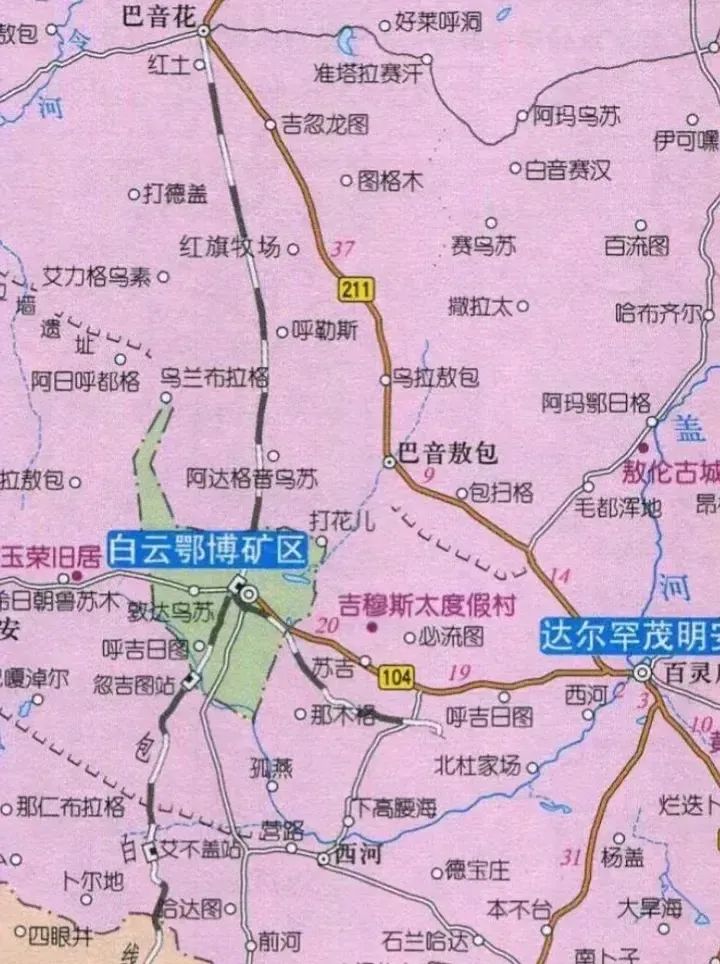 它地處陰山山脈以北的烏蘭察布草原西北部。南距包頭市區約149公里,北距中蒙邊境約95公里,東距達茂旗政府所在地百靈廟約42公里。礦區內的交通便利,有包白公路與市區相通,通過準軌鐵路連接京包線。
