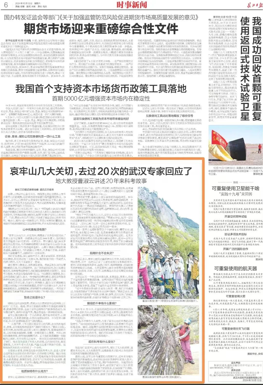 曹淑云:在多年的哀牢山地質(zhì)科學(xué)考察中,我及團(tuán)隊(duì)成員取得了諸多重要的成就。通過系統(tǒng)的地質(zhì)調(diào)查與研究,我們不僅積累了大量寶貴的第一手資料,還對(duì)這一地區(qū)的地質(zhì)構(gòu)造、巖漿、熱、流體及資源環(huán)境效應(yīng)有了更為深入的認(rèn)識(shí),為揭示該區(qū)域地質(zhì)深部至淺部演化過程及其礦產(chǎn)資源的勘探提供了科學(xué)依據(jù)。此外,我們還主持了多項(xiàng)國(guó)家級(jí)項(xiàng)目,發(fā)表了多篇高水平的學(xué)術(shù)論文,為國(guó)內(nèi)外同行提供了豐富的研究成果和參考數(shù)據(jù)。這些成果不僅提升了我們團(tuán)隊(duì)在地質(zhì)學(xué)領(lǐng)域的研究水平,也為保護(hù)當(dāng)?shù)刈匀毁Y源和促進(jìn)可持續(xù)發(fā)展貢獻(xiàn)了力量。