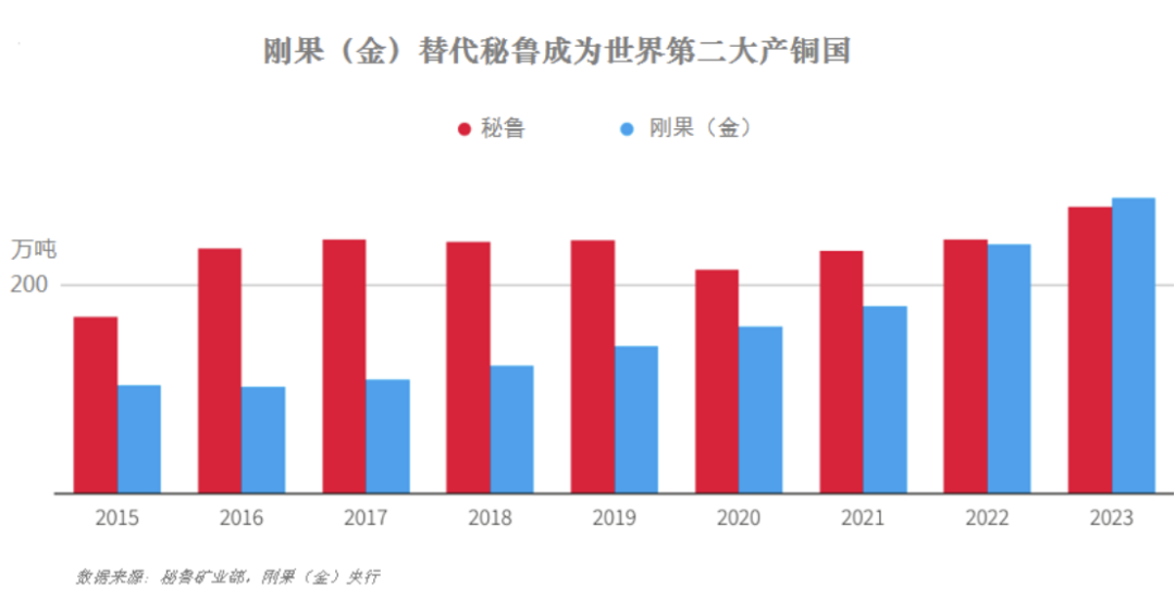 近年來,非洲加丹加銅鈷礦帶成為全球銅礦矚目的焦點,尤其剛果(金),是近十年全球銅礦產(chǎn)量增長最快的國家,2023年已超過秘魯成為全球第二大產(chǎn)銅國,加之地處非洲中部,剛果(金)也有了“非洲心臟”之稱。