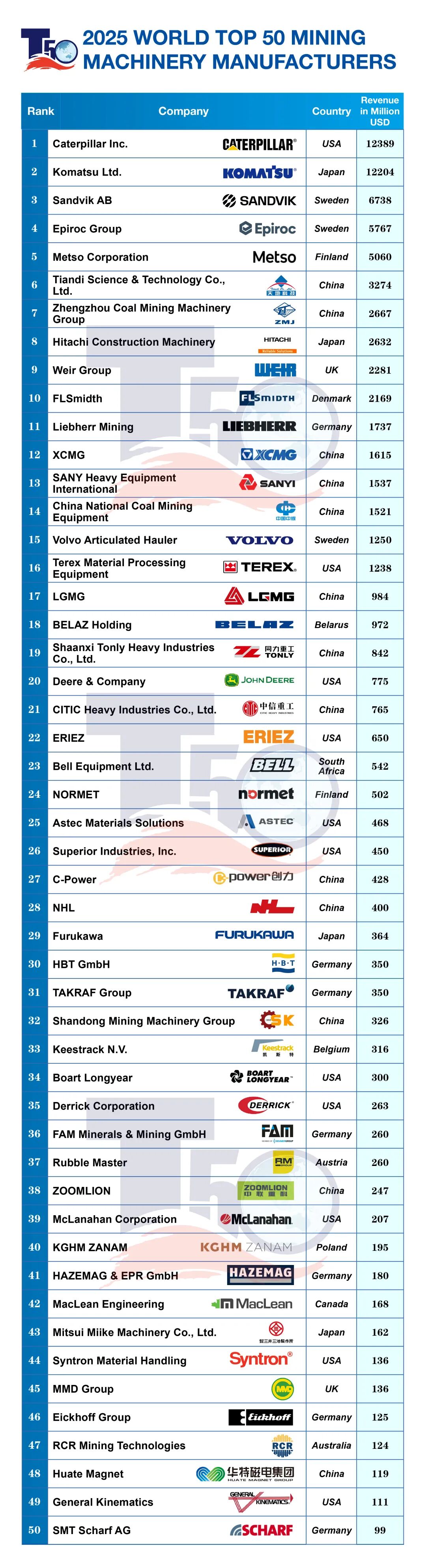 全球礦業裝備50強格局生變,中國軍團崛起撼動行業版圖